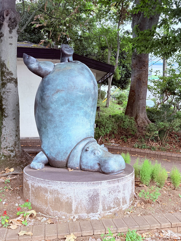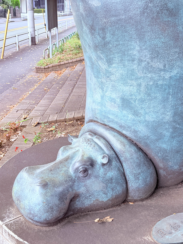 銅像でも伝わるこのもっちり感、上野動物園にたびたびカバを見に行きますが、確かにこんな肉感をしています。